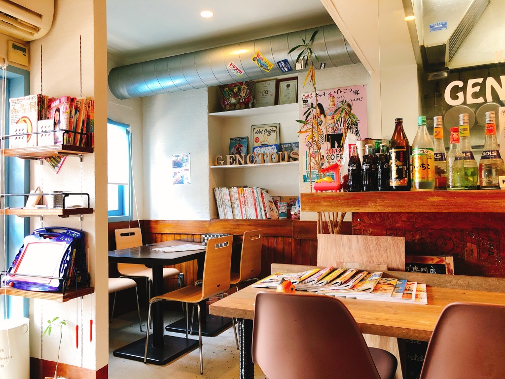 少しアメリカンテイストのある店内は、雑誌や子供の遊び道具などが揃っていてお一人さんでも家族連れでも来やすそう。
