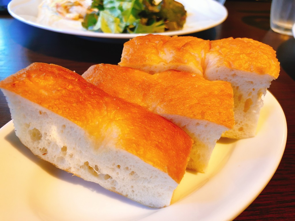 自家製のフォカッチャもきた。ほんのり甘く、パンだけで食べても美味しい。