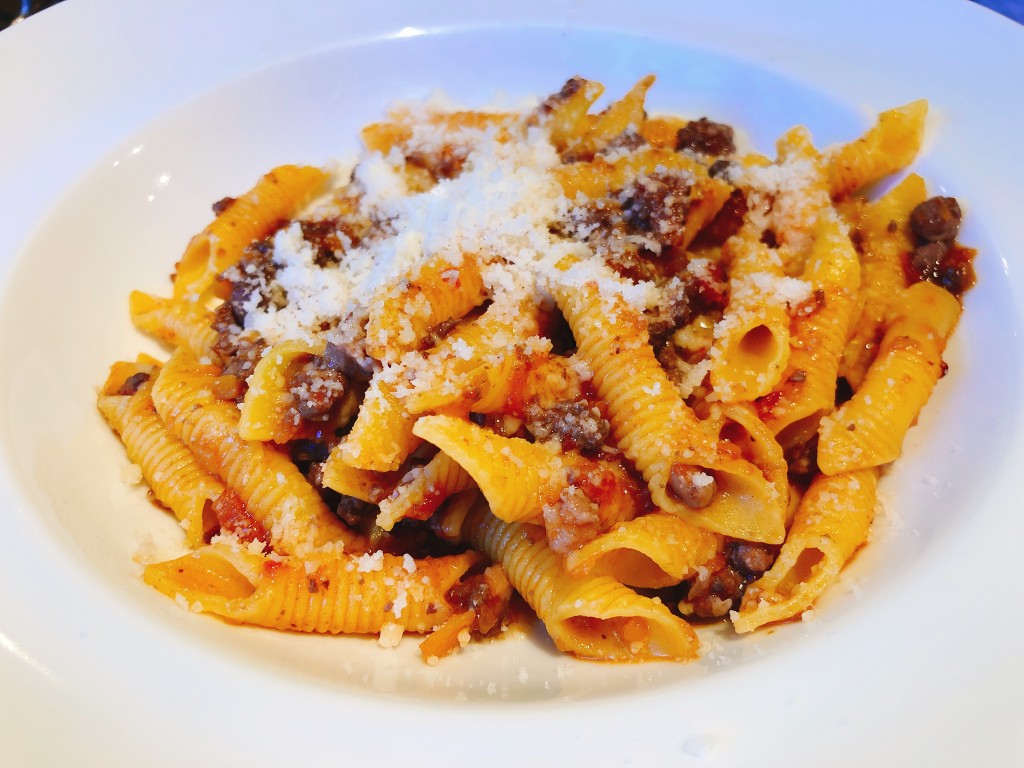 シェル状のパスタにミートソースがしっかり絡まり合い、パルメザンチーズのコクがプラスされていて、これまた絶品!
