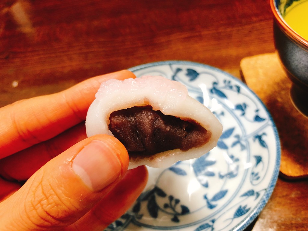 周りの餅部分が程よい硬さで食べやすく、こし餡がすっごく上品な味で美味!