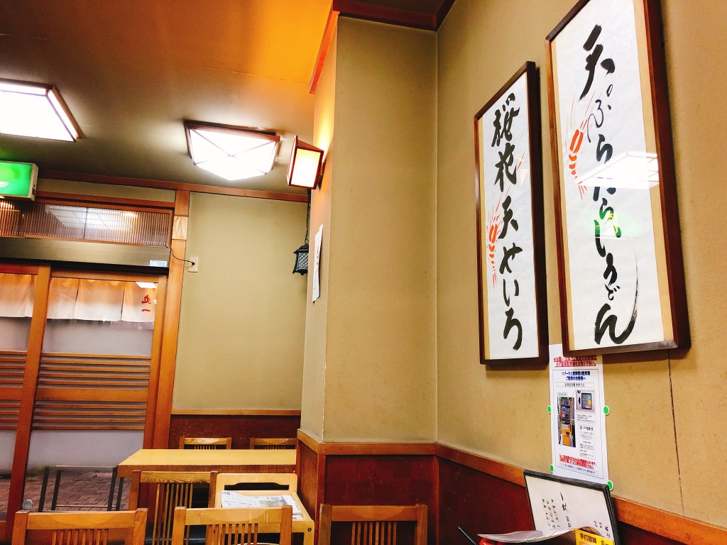 天婦羅釜揚うどんと書かれた看板が見えてくる。