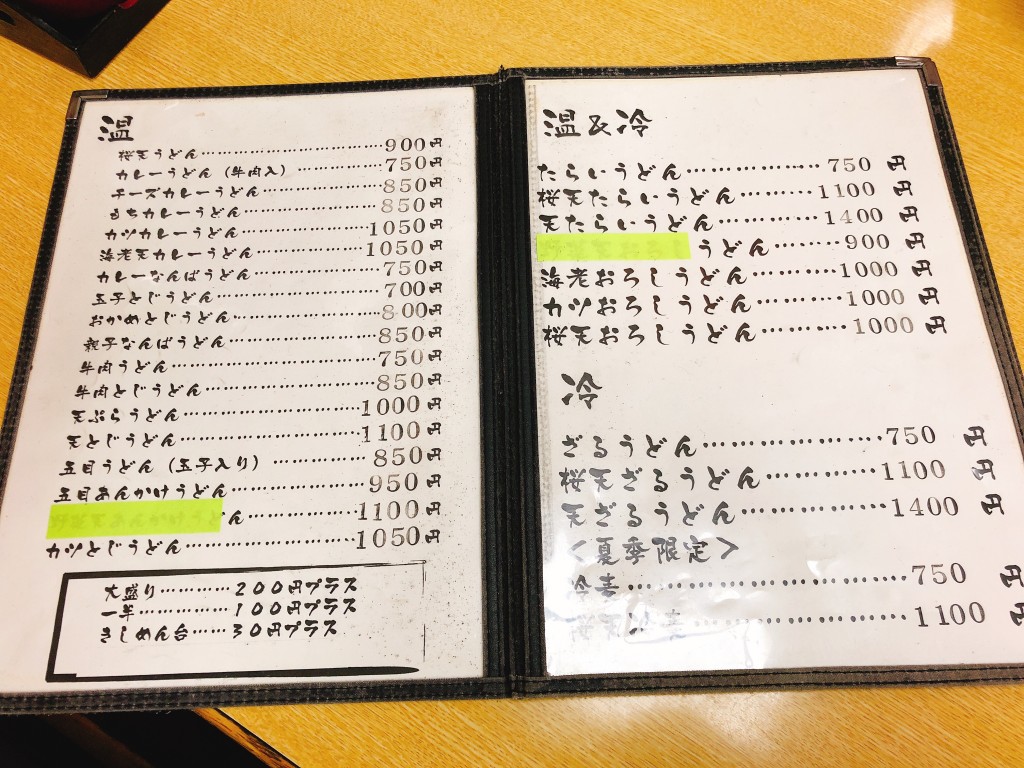 せっかくなので、今日は桜たらいうどんの冷たいのを注文。