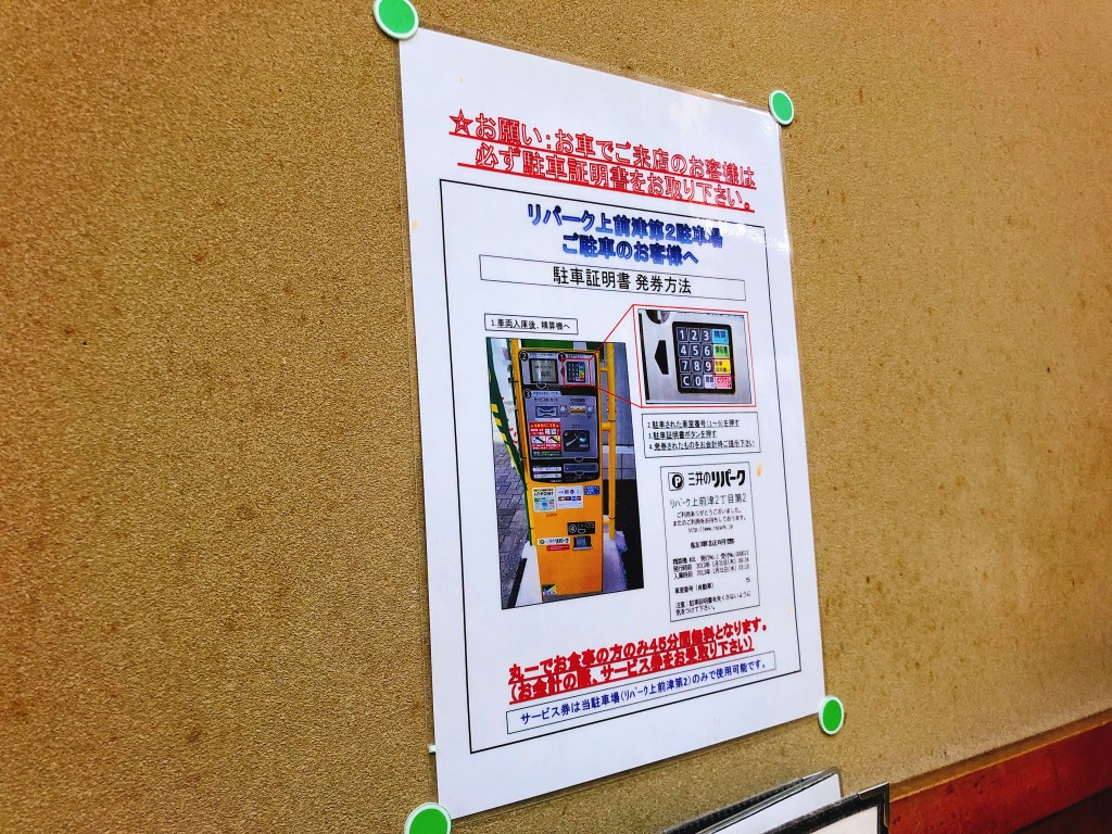 ちなみに、車で来る方はリパーク上前津第2駐車場に停めると、駐車証明書を持って来ることで45分間のサービス券を頂くことができます。